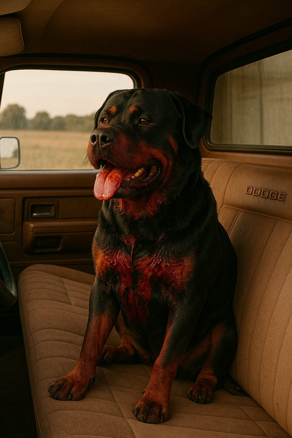 With a whistle, Meatball was back in the truck. The Dodge roared to life and barreled through the hills, leaving the Blue Ridge and his retirement in a bloody heap.
